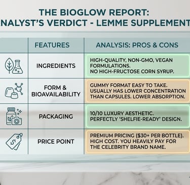 Today at The BioGlow Report, we’re diving deep into Lemme—the vitamin and supplement line by Kourtney Kardashian. We analyzed the ingredients, the bioavailability, and the "Glow Factor" to see if these gummies deserve a spot in your daily protocol.